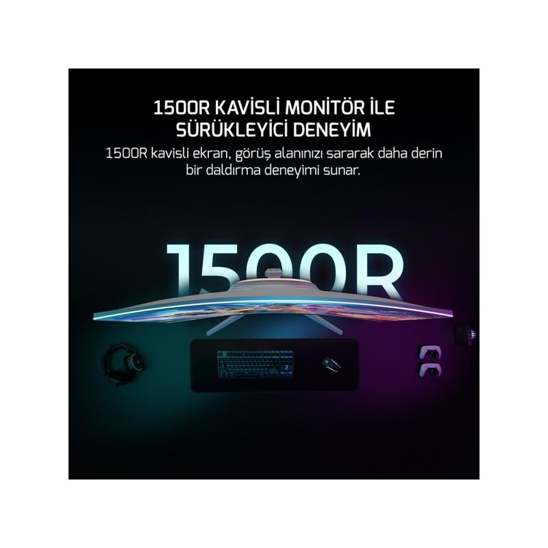 1500R kavisli ekran, görüş alanınızı sararak daha derin bir daldırma deneyimi sunar.