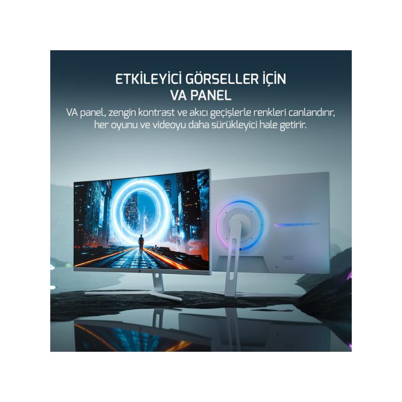 GAMEPOWER 27'' VİVDID T50 27¨ 1500R Curved RGB Beyaz 200Hz 0.5ms FHD 2x2W Speaker VA Gaming Monitör (Sıfır Ölü Piksel