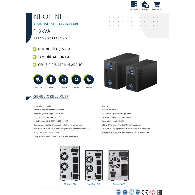 TESCOM NEOLINE 3KVA 6x12V/9AH Akülü 1F/1F ONLİNE LCD Ekranlı 5/10 DK UPS 900040102 3KVA