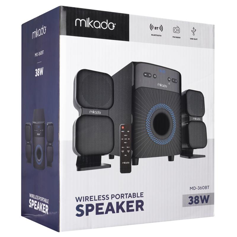 MIKADO MD-360BT 2+1 38W BT/AUX/USB/FM/LED Ekran Multimedia Speaker