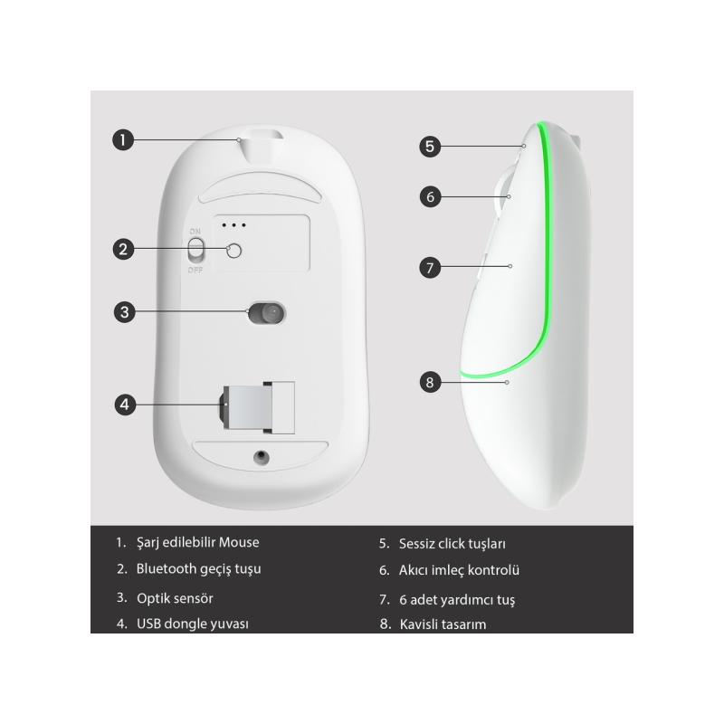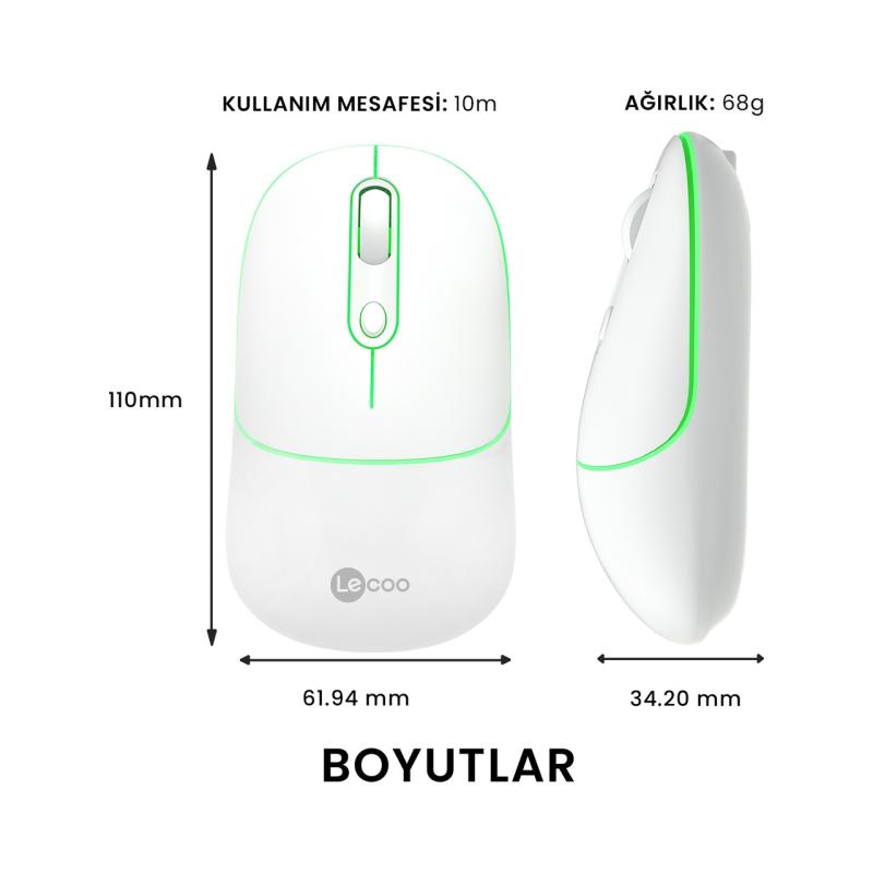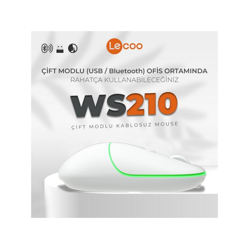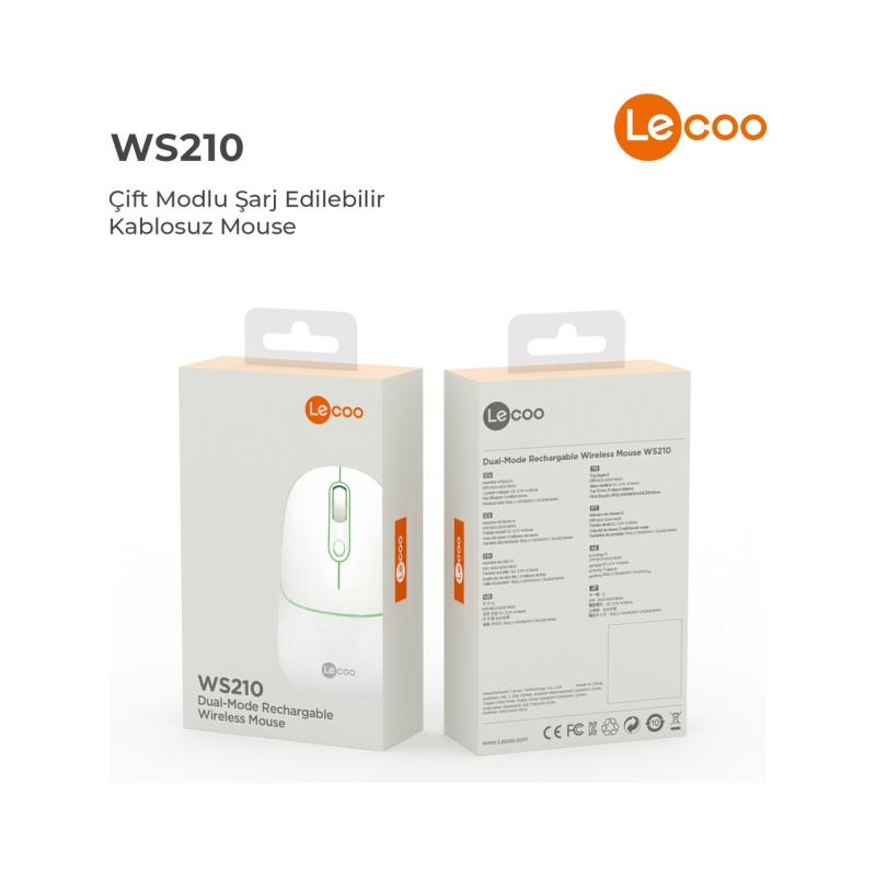 Lenovo Lecoo WS210 Bluetooth & 2.4G WiFi Kablosuz Şarjlı MOUSE BEYAZ