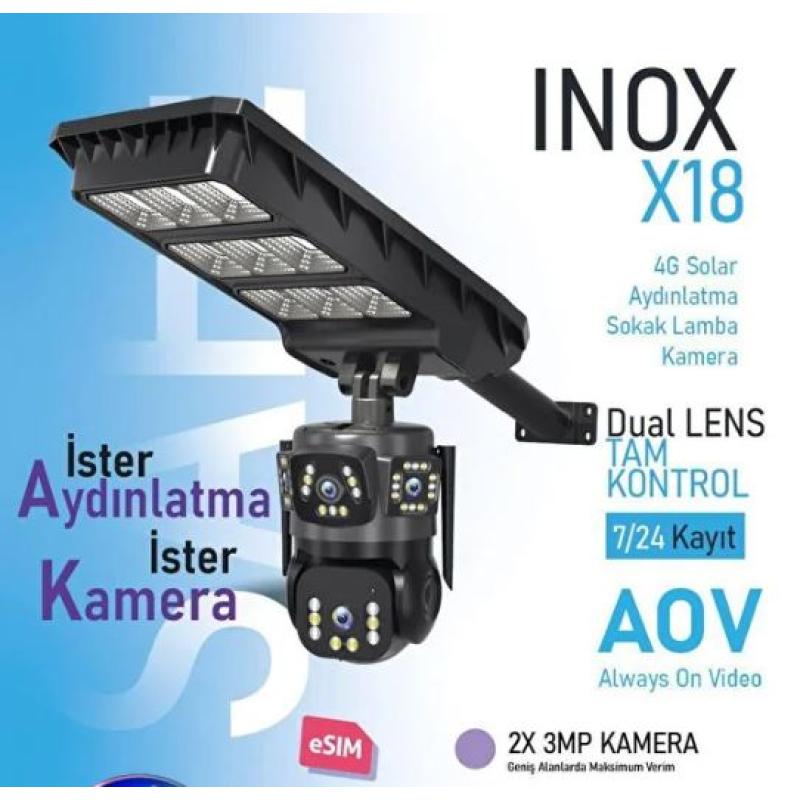 INOX-X18 3MP 3MPX2 3.6mm DUAL LENS SOLAR LAMBA ESİM 4G KAMERA 20mt ses algılama