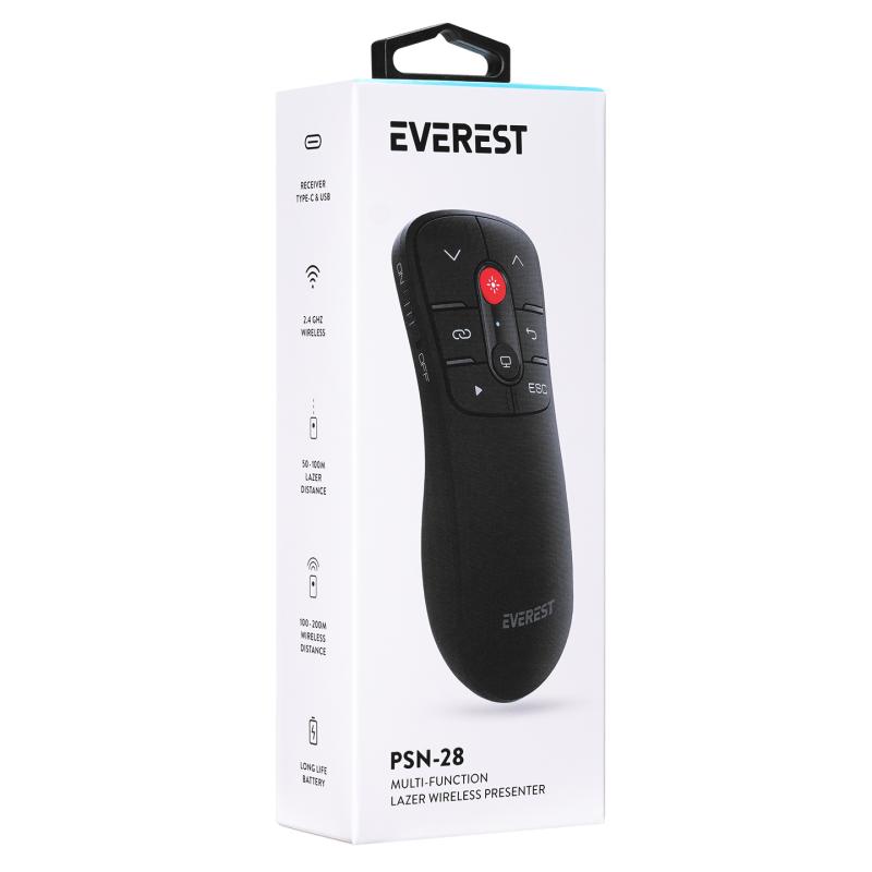 Everest PSN-28 Çok İşlevli USB Kırmızı Lazerli 2.4Ghz Kablosuz Type C Profesyonel Sunum Cihazı USB+Type C bağlantı