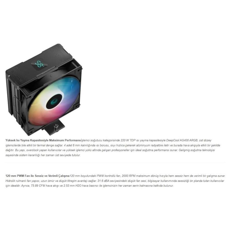 DEEPCOOL AG400-BK-ARGB-V2 120mm ARGB HAVA SOĞUTMALI İŞLEMCİ FANI AM5-1700p