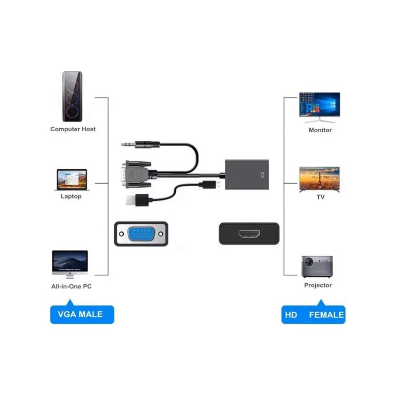 X-Level XCC7804 Ses Girişli VGA To HDMI Dönüştürücü (45 cm Aux Kablo 15 cm VGA Kablo)