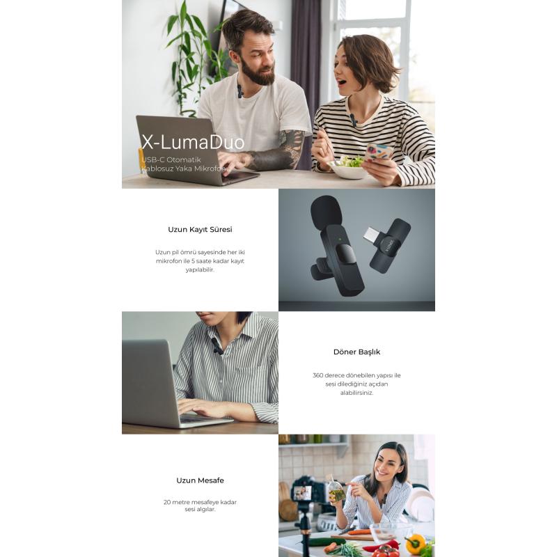 X-Level XMC3001 X-Lumaduo Pairing Kablosuz Mikrofon Siyah iphone Andoid uyumlu kablosuz yaka mık