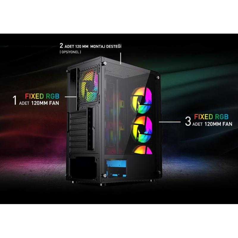 GAMEBOOSTER GB-PW908B 500W USB 3.0, ATX Mesh, Fixed 4xRGB Fan, Siyah Kasa