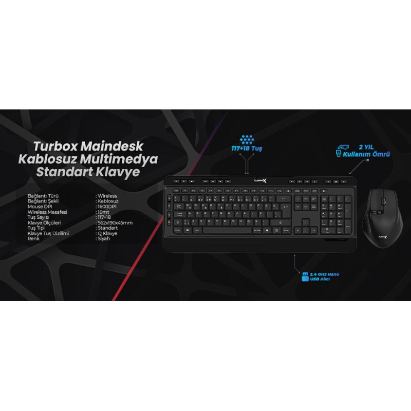 TURBOX MAINDESK Multimedya BİLEK DESTEKLİ KABLOSUZ KLAVYE MOUSE SET