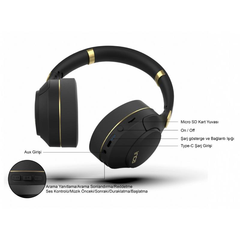 INCA Ibk-503S Kablosuz 5.3 Bluetooth Hafıza Kart Destekli Kulak Üstü Kulaklık Bej SİYAH
