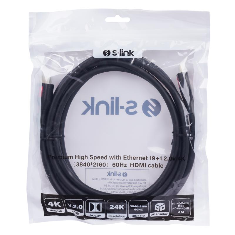 S-link SL-HDM4K10 10mt v2.0 4K 19+1 HDMI to HDMI (3840*2160) 60Hz Kablo