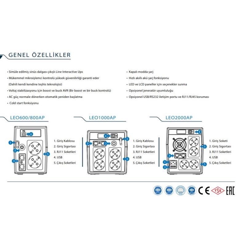 TESCOM 2000VA 2x12V/9AH LINE INTERACTIVE UPS 900020315 LEO2000AP
