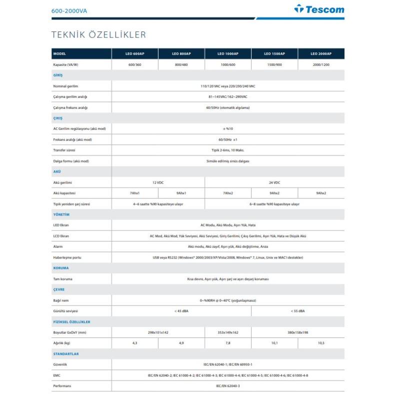 TESCOM LEO1000AP 1000VA 2x12V/7AH LINE INTERACTIVE UPS 900020312