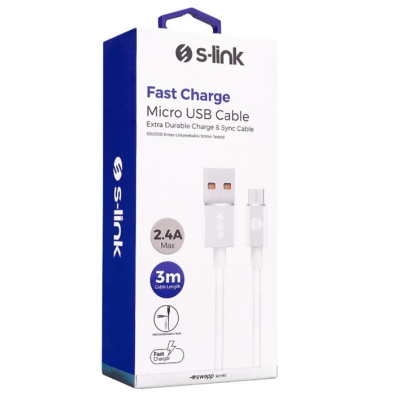 S-link SWAPP SW-C509 2.4A USB TO MİCRO BEYAZ DATA + ŞARJ KABLOSU 3MT